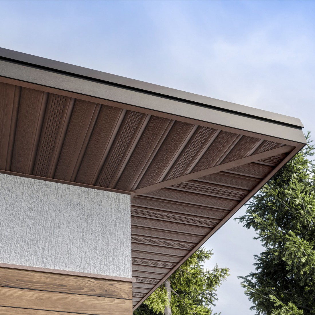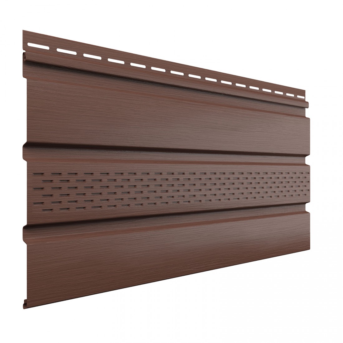 Софит ТехноНиколь Оптима частично перфорированный Каштан 3 м, 10 шт/упак купить в Сургуте по оптовой цене в интернет магазине СтройПлатформа. Софит с частичной перфорацией выполнен из ПВХ высокого качества. Изделие обеспечивает необходимый забор воздуха в подкровельное пространство, защищает его от порывов ветра, попадания снега, дождя, листьев. Предотвращает проникновение под кровлю насекомых и птиц. Используется для подшивки карнизных свесов.