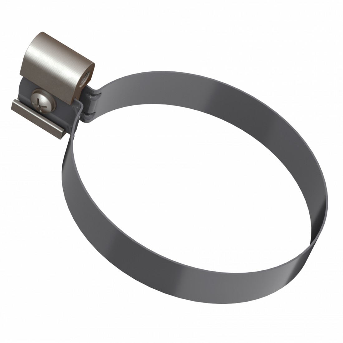 Хомут трубы металлический 140 мм ТехноНиколь Оптима 120/80 мм Ral 7024 серый, шт купить в Сургуте по оптовой цене в интернет магазине СтройПлатформа. Металлический крепежный элемент пластиковой водосточной системы Оптима для скатной кровли.
