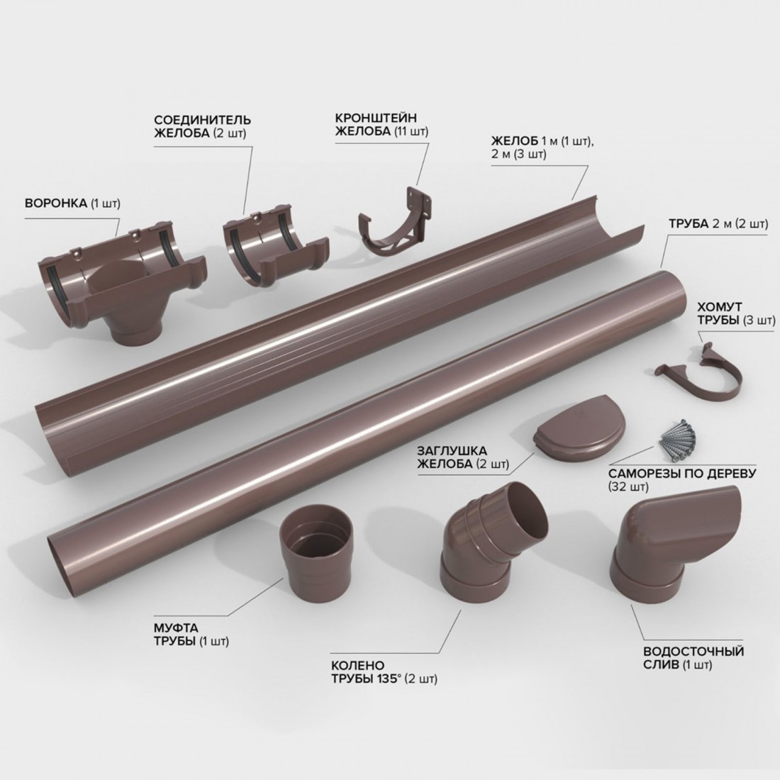 Комплект водосточной системы ТехноНиколь Оптима 120/80 для ската 6 м Ral 8019 темно-коричневый, шт купить в Сургуте по оптовой цене в интернет магазине СтройПлатформа. Набор элементов пластиковой водосточной системы ТЕХНОНИКОЛЬ ОПТИМА рассчитан для монтажа на 1 скат типовой скатной кровли длиной не более 6 метров.
