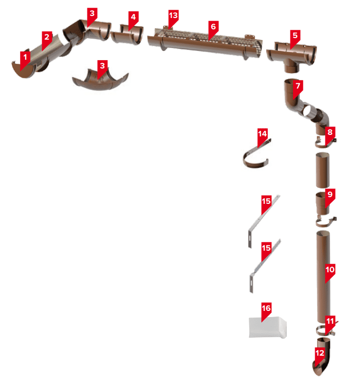 | 4. Соединитель желоба | 12. Водосточный слив |